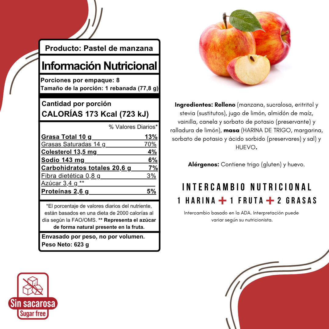 Postre de manzana de 8 porciones para compartir. Se recomiendo comer caliente y con helados sin azúcar.