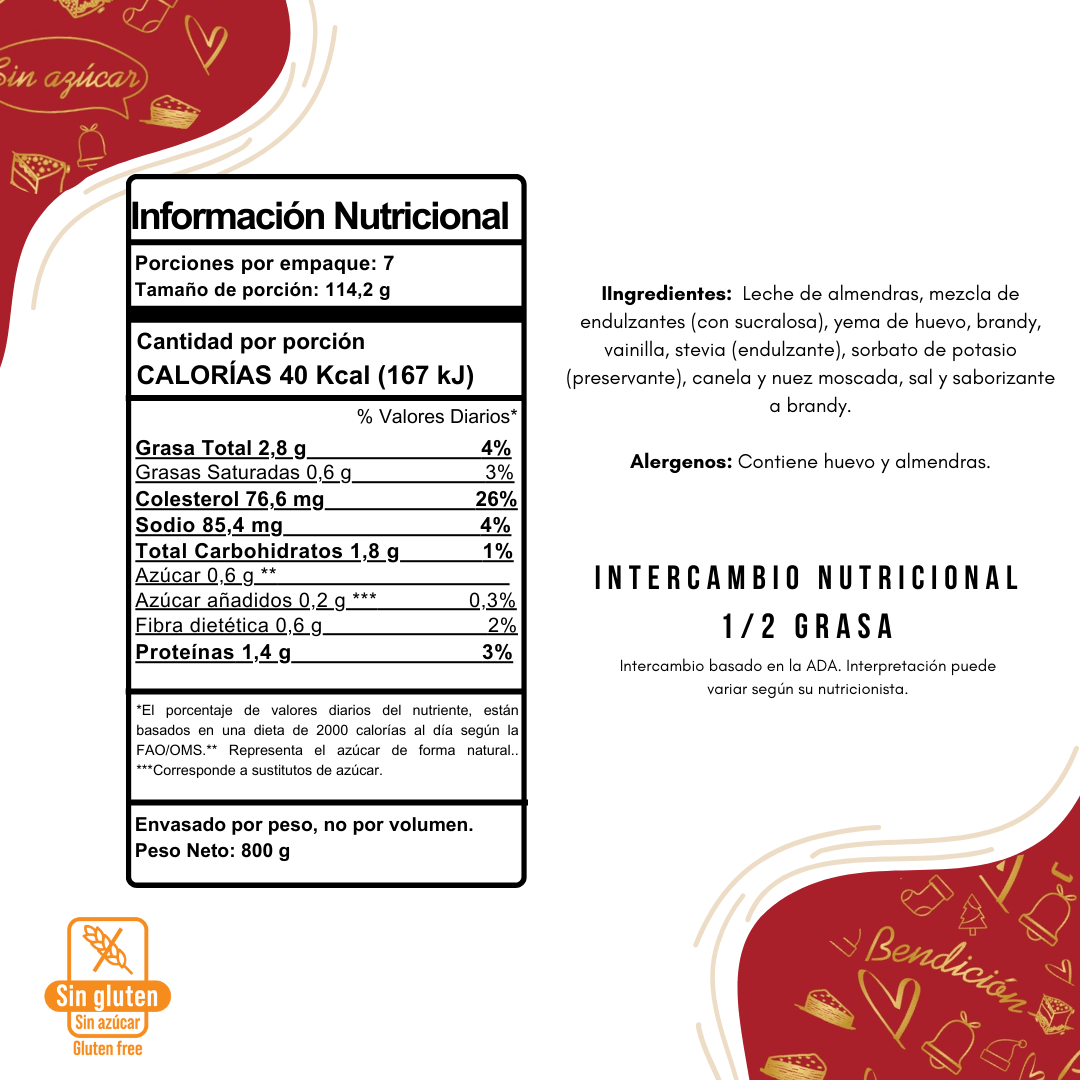 Rompope Deslactosado Sin Azúcar Y Sin Gluten